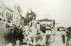 In 1890, the Silveira Martins Street was twelve blocks long.[7] In 1893, the toponym was changed again, honoring the former president of the province Júlio de Castilhos, but it was still called street.[8] Soon after, public lighting began to be installed with gas lamps, replaced in 1913 by electric lamps.[3] At the beginning of the 20th century, the street was still unpaved, but some stretches already had sidewalks, and many residences and other elegant buildings, such as the Scotti and Sassi palaces and the Central Theater, were already visible. In the 1920s, with the implementation of a new Code of Ordinances, new wooden buildings were forbidden in the center, as well as the expansion of existing ones; stricter rules for construction in general and more modern concepts about habitability, comfort, safety and hygiene were also introduced, which influenced the configuration of the buildings. The new regulations also caused the gradual removal of the many industries that had settled in the center and a retreat of the lower class, making the central region a stronghold of the elite and the middle class.[9][7][3] In 1939, Júlio de Castilhos Street became an avenue;[10] at the time, it stretched from João Pessoa Square to Angelina Michielon Street.[11]