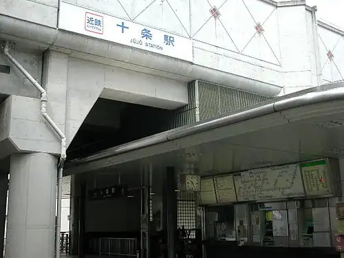 Jūjō Station (十条駅, Jūjō-eki) is a passenger railway station located in Minami-ku in Kyoto, Japan. It is operated by the private railway operator Kintetsu Railway.It is station number B03.[2]