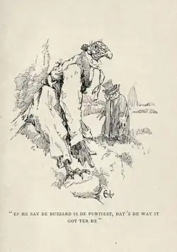 Condé illustrated the "Hollow Tree" books of Albert Bigelow Paine and some of Joel Chandler Harris's "Uncle Remus" stories, as well as books by Martha Strudwick Young and Aesop's Fables. Like some other illustrators of the day, Condé attempted to show animals as if drawn from life, though he also followed the 'humanizing' line of traditional animal fables and usually clothed his animal characters in trousers and coat or shirt, and sometimes shoes as well.[1][2]