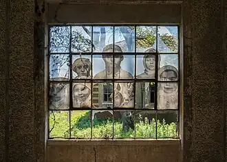 In 2014, JR continued his Unframed project on Ellis Island, using photos from when the island operated as the entryway for millions of immigrants to America. These archival images were installed into the facades and walls of the abandoned hospital on the grounds that once housed the sick and dying.[62]