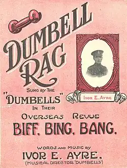 Ayre began his career as a pianist for silent films in Toronto.[1] He enlisted in the Canadian army as a private after the outbreak of the First World War. Soon after, he came to the attention of Captain Mert Plunkett, who selected Ayre to be a pianist for the 3rd Canadian Division Concert Party, known as the Dumbells. Ayre served with the Dumbells until the war ended, attaining the rank of Corporal during the war. He composed The Dumbell Rag while still a soldier; the piece went on to sell more than ten thousand copies of sheet music.[1]