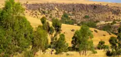 The biik wurrdha Jacksons Creek valley and its underlying geology frame the parklands and includes Jacksons Hill and Redstone Hill volcanic cones, rapids, steep escarpments and rocky outcrops formed by lava flows.[2][19][20]