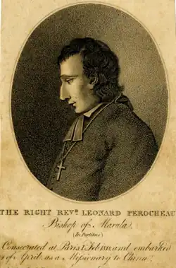 Jacques-Léonard Pérocheau, M.E.P. (Chinese name: 馬伯樂; 1787–1861) was a Roman Catholic prelate who served as Vicar Apostolic of Northwestern Szechwan (1856–1861), Vicar Apostolic of Se-Ciuen (1838–1856), and Titular Bishop of Maxula Prates (1817–1861).[1][2][3][4][5][6]