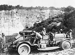 French troops seeting up a motor winch of the observation balloone to establish an observation post at Montchenot (Marne), 7 May 1918 with Delahaye 80.