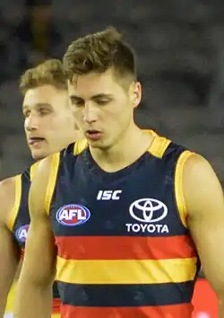 Collingwood had the option of nominating him as a father-son selection in the 2013 national draft, but they decided not to, instead saying they would consider selecting him as a father-son pick if he wasn't drafted in the national draft.[5] He wasn't selected in the draft, but Collingwood chose not to select him in their list anyway, forcing him to go to the rookie draft.[6] He was drafted by Adelaide with pick 40.[7]