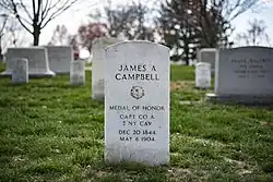 Following his death at Fort Snelling, Minnesota on May 6, 1904,[24][25] Campbell was laid to rest with full military honors at the Arlington National Cemetery in Virginia.[26]