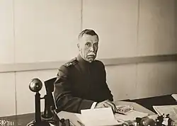 Aleshire was appointed to a third term as Quartermaster General in August 1916, but declining health caused him to retire for disability a month later.[12] When he retired, Aleshire requested return to active duty if the United States entered World War I.[12] In June 1917, two months after the American entry into the war, he was recalled and appointed to the Council of National Defense, the federal government body that planned and coordinated farm, industrial, financial, and transportation support to the war effort.[12] He was subsequently appointed chairman of the council's Priority Committee, and he served until retiring for the second time in July 1918.[12]