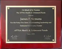 - ^ a b AFTRA Health & Retirement Funds Video Presentation on the Occasion of James F. Sirmons Retirement from the Board of Trustees.