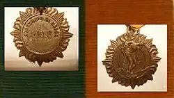 The bronze medals awarded posthumously to James McCormack, for recognized military service to Ireland, are on a green and orange ribbon stamped with the message “Seachtmhain na Casga 1916”.[7]