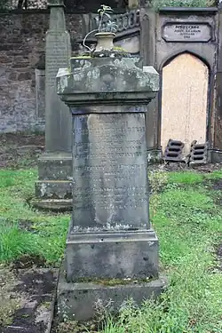 He died at his residence, 43 Inverleith Row, on 27 March 1864. He was buried on 1 April in the graveyard of St Cuthbert's Church, Edinburgh.[4] His grave lies at the west end of the north extension and is beginning to erode.