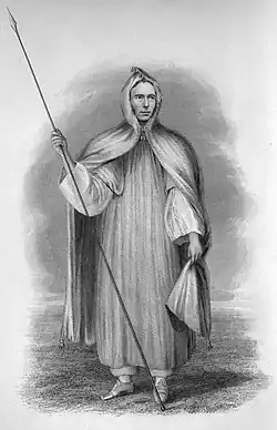 Richardson made an expedition in 1845 from Tunis and Tripoli in Libya to Ghadames and Ghat in Libya in the middle of the Sahara. Here he collected information about the Tuareg and after nine months arrived back in Tripoli. After he had published Travels into the great desert of Sahara (2 Books. London 1849), he succeeded in convincing the British government to equip an expedition into Sudan and to Lake Chad. In March 1850, Richardson went for the second time to Ghat accompanied by Heinrich Barth and Adolf Overweg.[2] His party were the first Europeans to cross the stony elevated plain of the Hammada. James Richardson died of unknown illness on this journey on 4 March 1851 in Ngurutua, a six-day journey away from Kukawa near Lake Chad.[2] His travel notes and diaries were published by Bayle Saint John as Narrative of a Mission to Central Africa (1853)[3] and Travels in Morocco (1859).[4]