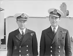 Rivett-Carnac (left) on board HMS Rodney, April 1943
