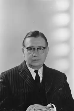 James Eduard Schwarzenbach (5 August 1911 – 27 October 1994) was a right-wing Swiss politician and publicist. In the 1970s he was head of the short-lived Republican Movement. He also was publisher of a broad spectrum of right-wing literature as owner of the Thomas-Verlag. He served in the National Council from 12 December 1967 to 28 February 1979, representing the Canton of Zürich.[1]