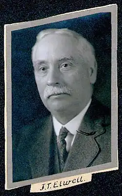 James Tallmadge Elwell (July 1855 – August 1933) was a Minneapolis, Minnesota real estate developer and state legislator.[1] He founded and developed the Como neighborhood in Minneapolis, where the Como Congregational Church and the Tuttle School are historic structures of the period.[2] Later in his career, he played a major role in the public financing of the Minneapolis park system, the expansion of the University of Minnesota campus, and served as president of the Minneapolis Planning Commission.