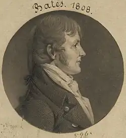In 1807, Bates' older brother Frederick was Secretary of the Missouri Territory, based in St. Louis. James and his younger brother Edward joined Frederick in St. Louis, where James began the practice of law (Edward would follow him in this profession).[1]