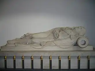 On 20 November 1816 van Kinsbergen received the royal writ by the new King William I of the Netherlands that he was promoted to jonkheer. He died three years later shortly after his 84th birthday at Apeldoorn, from a chronic lung disease, where he was buried on 27 May. In 1821 a marble grave monument was finished by Gabriël in the Nieuwe Kerk in Amsterdam, but this is a cenotaph.
