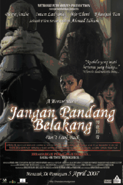 Jangan Pandang Belakang (English: Don't Look Behind) is a 2007 Malaysian Malay-language supernatural horror film directed by Ahmad Idham starring Pierre Andre, Intan Ladyana, Khatijah Tan and Ruminah Sidek.