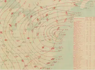 3. ^ a b c d "Areas of Low Pressure" (PDF). Monthly Weather Review. 14 (1): 4–5. January 1886. Bibcode:1886MWRv...14....4.. doi:10.1175/1520-0493(1886)14[4:AOLP]2.0.CO;2. Retrieved February 21, 2015.