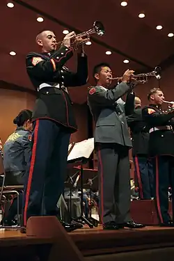 The Music Corps (Japanese: 音楽隊, romanized: Ongakutai) is a department of the Japan Ground Self-Defense Force that is tasked with presiding over military bands in the JGSDF. Similarly, the Maritime Self-Defense Force and the Air Self Defense Force each have a music corps. JGSDF military bands regularly participate in international festivals and take part in national and branch-related events. It is roughly the equivalent to the Royal Corps of Army Music (CAMUS) in the British Army or the Music Branch (Canadian Forces).