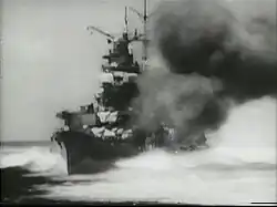 On 26 October 1944, Nowaki was crippled by gunfire from the light cruisers USS Vincennes, Biloxi and Miami and finished off by a torpedo from DesDiv 103's destroyer USS Owen. The ship sank 65 miles (105 km) south-southeast of Legaspi, Philippines with about 1,400 men, including all Chikuma survivors. The sole survivor from Chikuma was a crew member who was not picked up by Nowaki and drifted ashore on his own, later to be captured by the US navy.[14][15]