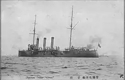 Otowa (音羽) was a protected cruiser of the Imperial Japanese Navy, designed and built by the Yokosuka Naval Arsenal in Japan. The name Otowa comes from a mountain in Kyoto, located behind Kiyomizu-dera. The waters from a waterfall at this temple were traditionally held to be a cure for all illnesses.