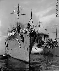 ![]() Yūkaze anchored at Kure with other Japanese destroyers after the surrender of Japan, October 1945
