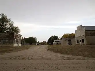 By the 1930s and the advent of the automobile, the town began declining somewhat, and beginning in the 1980s, most of the few remaining residents gradually moved to more modern accommodations scattered around the edges of town, eventually leaving the old, historic center of town for the most part abandoned.[4] One of the remaining buildings is the old Shoults Garage, which operated from 1928 to 1945; and then as the Wolfe Garage from 1946 until 1960. Also still standing are a gas station, a lumber mill, the general and hardware stores, the stone cutting business, and a bank.[5]