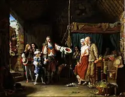 The Grand Dauphin visits a hut, led by the Duc de Montausier.