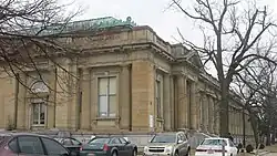 The Jefferson Center or Old Central Post Office is a historic building in downtown Toledo, Ohio originally built in 1911 and used by many different organizations. It was designed by government architect J. Knox Taylor in a classical architectural style and features a sandstone exterior.