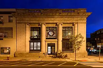 The Jefferson Trust Company is a historic building located in Hoboken, Hudson County, New Jersey, United States. The building was built in 1912 and was added to the National Register of Historic Places on February 13, 1986.[3] The original trust company failed during the Great Depression and the building passed on to a succession of owners. The building was constructed using granite and brick. Much of the original plaster interior remains intact. The building underwent a renovation into luxury condos in the 2000s.[4]
