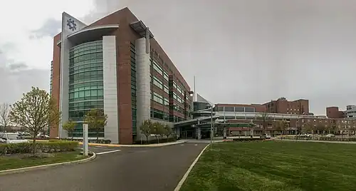 Jersey Shore University Medical Center (JSUMC) is a 691-bed[2] non-profit, tertiary research and academic medical center located in Neptune Township, New Jersey, servicing coastal New Jersey and the Central Jersey area.[3] JSUMC is the region’s only university-level academic medical center. The hospital is part of the Hackensack Meridian Health Health System and is the system's second largest hospital. JSUMC is affiliated with the Hackensack Meridian School of Medicine.[4] JSUMC is also an ACS designated level I trauma center[5][6] with a rooftop helipad handling medevac patients.[7] Attached to the medical center is the K. Hovnanian Children's Hospital that treats infants, children, adolescents, and young adults up to the age of 21. JSUMC is listed as a major teaching and tertiary care hospital and has a staff of 127 interns and residents. It is a member of the Council of Teaching Hospitals and Health Systems.[8]