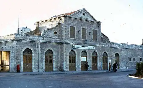 The Jerusalem railway station (Hebrew: תחנת הרכבת ירושלים, Tahanat HaRakevet Yerushalayim; Arabic: محطة قدس شريف) is a historic railway station in Jerusalem, located between Hebron Road and Bethlehem Road, near the German Colony. It is also known as the Jerusalem–Khan railway station (Hebrew: תחנת הרכבת ירושלים – החאן, Tahanat HaRakevet Yerushalayim–HaKhan) after the caravanserai building, now the Khan Theater located across the road, to differentiate it from the Jerusalem–Malha and Jerusalem–Yitzhak Navon stations opened after its closure. It was part of the Jaffa–Jerusalem railway until its closure in 1998.