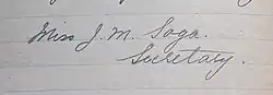 During her years in Claremont Church, Soga's contribution was widely admired, with the Kirk Session publishing a tribute by the Kirk Elder "Dr Scott" when she retired from the choir in 1932 "The members of Session have heard with deep sympathetic interest of the resignation of Miss JM Soga of the position in the choir which she has held with complete acceptance for so long a term of years. They have unanimously and cordially resolved to place on record their feelings of appreciation and gratitude to Miss Soga, not merely for the excellent and devoted service she has given to the praise of sanctuary, but also for the untiring interest she has shown for all matters concerning the welfare of the congregation, especially in its Foreign Mission enterprises.  They have further resolved that a copy of this Minute by transmitted to Miss Soga, together with an expression of their hope that her years of retirement may be greatly blessed".[69] Investigation into Dr Scott discovered that he was the Headteacher of the distinguished Hutchesons' Grammar School,who worked in the civic and academic spheres as well as the ecclesiastical one.[70]