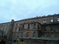 The fire damaged Jesuit College in Khyriv, Ukraine (detail, 2018)
