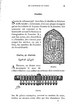 Description of a Jewish talisman and Algerian headdress, from Paul Eudel, Dictionnaire des bijoux de l’Afrique du Nord (1906)[66]