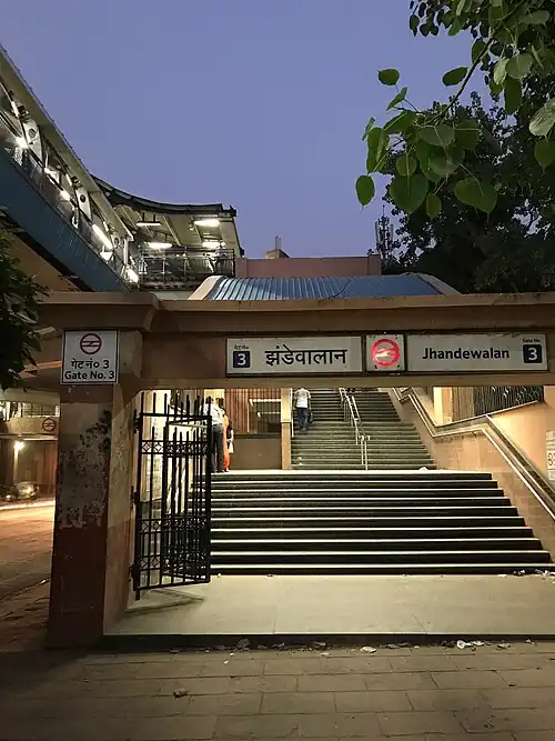 The Jhandewalan metro station is located on the Blue Line of the Delhi Metro.[1]