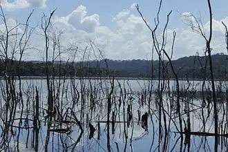 In May 1994 part of the Altamiro de Moura Pacheco State Park was removed to make way for the Ribeirão João Leite Reservoir, planned to supply water to the Metropolitan Region of Goiânia, the state capital. The park was reduced in size to 2,132 hectares (5,270 acres). The João Leite Reservoir provides water for over one million people. State law 18.462 of 9 May 2014 created the João Leite State Park with an area of 2,832 hectares (7,000 acres) from part of the area taken for the reservoir. The two parks now total 4,964 hectares (12,270 acres).[1]