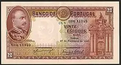 He was depicted in a 20 Portuguese escudo note issued in the 1940s.[3]