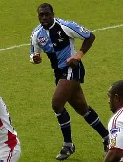 Joe Mbu (born 11 November 1983), also known by the nickname of "Big Joe", is a Congolese former professional rugby league footballer and coach. Mbu played for the London Broncos/Harlequins RL in the Super League.[1] He is the current head coach of the London Skolars.[2]