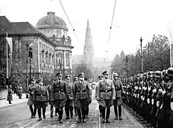 After the Nazi seizure of power, Malsen-Ponickau was transferred to the command of SS-Abschnitt IX in Nuremberg on 20 April 1933 and also became acting chief of police in Nuremberg-Fürth.[4] After a conflict with Nuremberg Gauleiter Julius Streicher, Malsen-Ponickau was recalled from his posts and transferred to the staff of Reichsfuhrer-SS Heinrich Himmler on 15 August 1933.[5] Although promoted to SS-Brigadeführer that same date, this would be his last promotion, and he remained the senior-most holder of this rank. He was next assigned from 15 January 1934 to 20 September 1936 as the commander of SS-Abschnitt X with headquarters in Stuttgart. He sought election to the Reichstag in March 1936 and April 1938, but did not receive a mandate. In March 1936 he also joined the 18th Cavalry Regiment in Bad Cannstatt as an Oberleutnant of reserves and was promoted to Rittmeister of reserves on 1 March 1938. In April 1938 he was transferred to become the Acting Police Director in Frankfurt (Oder), and this appointment was made permanent in March 1939.[1]