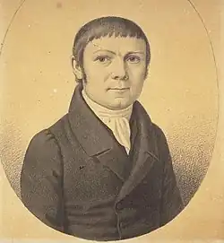 Handt was born Johann Christian Simon Hundt[2] in 1794.[3] One source lists his birthplace as Aken-on-the-Elbe, Saxony, Germany, others list Prussia.[1] His mother died in 1813 and his father in 1816.[2] He changed his surname to "Handt" after being constantly laughed at for his surname sounding like "Hund" (German for "dog").[2] Handt went on to become a tailor before enrolling as a missionary; in 1822, Handt moved to Switzerland to attend the Basle Missionary Institute in Basel.[1] He graduated in January 1827.[1]