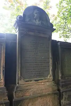 He died suddenly while entering his carriage[17] at the front of his home, 19 York Place, Edinburgh, 14 November 1844.[14] An autopsy showed that the cause of death was ruptured coronary artery.[14] The pathologist, Adam Hunter, speculated that his death had been brought about by excessive bloodletting.[7] He is buried against the east wall of St Cuthberts Churchyard adjacent to the gateway into Princes Street Gardens.