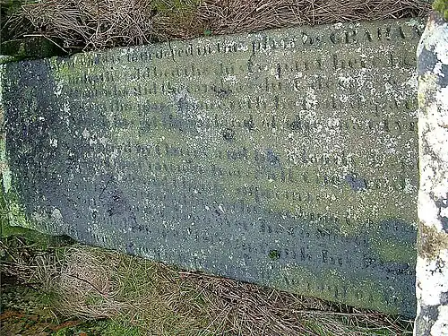 12. ^ Wodrow's History of the Sufferings of the Church of Scotland. Edin. 1721-2; Patrick Walker's Life of Peden, (published within "Six Saints of the Covenant". 1727, Glasgow; Thomson's edition of A Cloud of Witnesses (1713), Edin. 1871, gives (pp. 574-5) an account of the monument, with copy of inscription; Daniel Defoe's 1717 book "Memoirs of the Church of Scotland can also be included in this group as an exercise in polemic; as can John Howie (biographer)'s scholarly "Scots Worthies" (1775) which, while written 100 years later, mentions in passing the story of Alexander Peden's portentous prophecy at John Brown's marriage p511