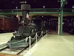 The C&A was soon absorbed into the United New Jersey Railroad and Canal Company (1869), which, in turn, was merged into the Pennsylvania Railroad (PRR) in 1871.[15] The PRR saw the potential publicity to be gained by exhibiting such an old engine, showing it at the 1876 Centennial Exposition in Philadelphia;[16] PRR workshop staff then retrofitted the engine to look more as it originally had. The wide funnel was replaced with a straight metal tube and the cab walls and roof were removed. The PRR then exhibited the engine in 1883 at the National Railway Appliance Exhibition in Chicago, Illinois.[17] In 1885, the Smithsonian Institution accepted the donation of the John Bull from the PRR as the Institution's first large engineering artifact.[3]