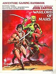 John Carter, Warlord of Mars is a science-fantasy system based on Edgar Rice Burroughs's novels of Barsoom, a Mars ruled by various humanoid warrior races that fight with sword and gun.[1] Although it mainly consists of man-to-man combat rules for use with miniatures (as they were published to support a line of Barsoomian figures), it does include some rules for role-playing.[1]