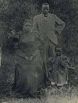 Chilembwe had a wife named Ida Zuao. Her mother was called Nduloga.[37] They had two sons, John (nicknamed Charlie) and Donald, who were born at unknown dates, in addition to a daughter, Emma, who died during infancy. After Chilembwe was killed, Ida took care of the two sons until her death amidst the 1918 influenza outbreak, where afterwards, they were under the care of their grandmother until she herself died in 1922. They were then entrusted into the hands of the Blantyre Mission and government as orphans. Charlie and Donald struggled to live up to their father's legacy; Charlie spent his last years at Blantyre working as a sweeper until his death in 1971, while Donald, struggling to find work, largely vanishes from the historic record in the 1930s. It is speculated that he went to the United States or South Africa.[67]