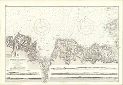 From 1844 until 1862 Davis worked as a surveyor in home waters, first as assistant-surveyor to Captain G.A. Bedford on the west coast of Ireland, then on the south coast of England with Lieutenant H.L. Cox and then with Staff-Commander Usborne. In 1862 he sailed with HMS Porcupine on a deep-sea sounding cruise to the north-west of Ireland. This was successful in finding a suitable route for a transatlantic cable, avoiding the precipitous slopes that mark much of the edge of the continental shelf.[4][5] Davis was commended in official reports for his contributions to this work. He then became a naval assistant to the Admiralty, responsible for supervision of deep-sea sounding equipment and for maintaining the catalogue of official documents.[2] He published a number of works on the technical aspects of surveying and exploration, in particular on deep-sea temperature measurement.[4] He was promoted Staff-Commander in 1863, and to Captain in 1870. He retired from the Hydrographic Office in 1877 and died later that year.[2]