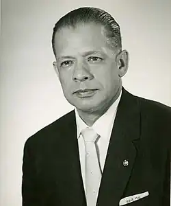 The activism and leadership of John H. Wheeler thrived in the 1950s and 1960s.[4] He was heavily involved in politics and education through various positions within the federal government and on various boards of trustees for institutions like Morehouse College, Atlanta University, Lincoln Hospital, and the National Scholarship Service for Negro Students.[5] While serving two presidents, Wheeler devoted his time to the development of low-income housing, focused on race relations, and the elimination of poverty. He had working relationships with a number of United States presidents, John F. Kennedy,[4] Richard Nixon, and Lyndon B. Johnson, who invited him to assist in drafting the Civil Rights Act of 1964. In 1956, John H. Wheeler was also the first African-American to bring an integration suit in the state of North Carolina.[6]