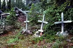 In 1926, Hornby tried to spend a year in a spot by the Thelon River with his 18-year-old cousin Edgar Christian and another young man, Harold Adlard.[1] Unfortunately, the trio missed the caribou migration southward and therefore lacked sufficient food to survive the winter. Hornby died of starvation along with his companions in 1927. The graves of the three men can be found by the Thelon River near Hornby Point.