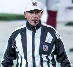 John J. Hussey (born c. 1964) is an American professional football official in the National Football League (NFL). Hussey was hired as a Line Judge in the 2002 NFL season. Hussey was promoted to the Referee position for the start of the 2015 NFL season following the retirement of Bill Leavy.[2][3] Hussey wears uniform number 35.